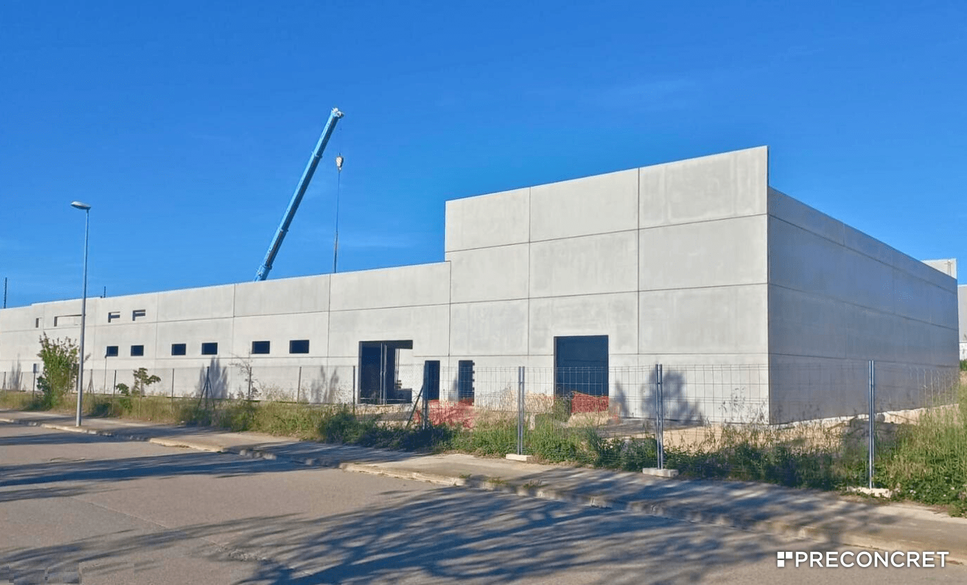 • PROJECTE: Nau industrial de 69,90 m de llargada x 34,80 d'amplada x 8,45 m. d'alçada. Panells de tancament de 20 cm alleugerits en exteriors i 16 cm massís en mitgeres interiors. Coberta a dues aigües, peça coberta jàsseres I-80/I-100. Forjat de 630 m2.