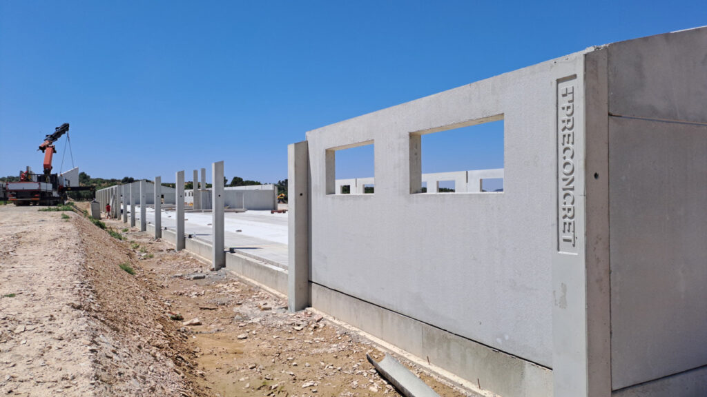 Sin duda el proyecto de construcción de mayor complejidad en que trabajamos durante el segundo semestre del año pasado son las obras de las nuevas instalaciones de la empresa Tigre 1945 (Cemento Natural Tigre), referente en la producción de cementos naturales, cal hidráulica y morteros de cal NHL. La firma con sede en Cervera (Segarra) ha confiado en Preconcret para construir un nuevo complejo que incluye centre productivo, almacén logístico y área de oficinas. Destaca la elevada altitud útil de la nave central (11 metros) y con nuestra cubierta MILANO, para lograr una gestión óptima del espacio; así como la instalación de paneles con función de muro a lo largo de todo el perímetro de las instalaciones para garantizar su seguridad y una mejor integración con las parcelas adyacentes.