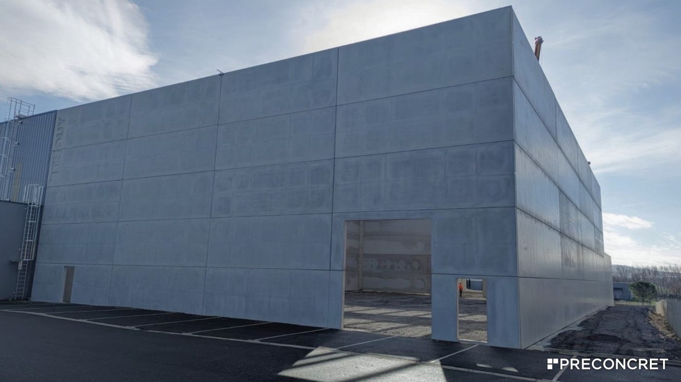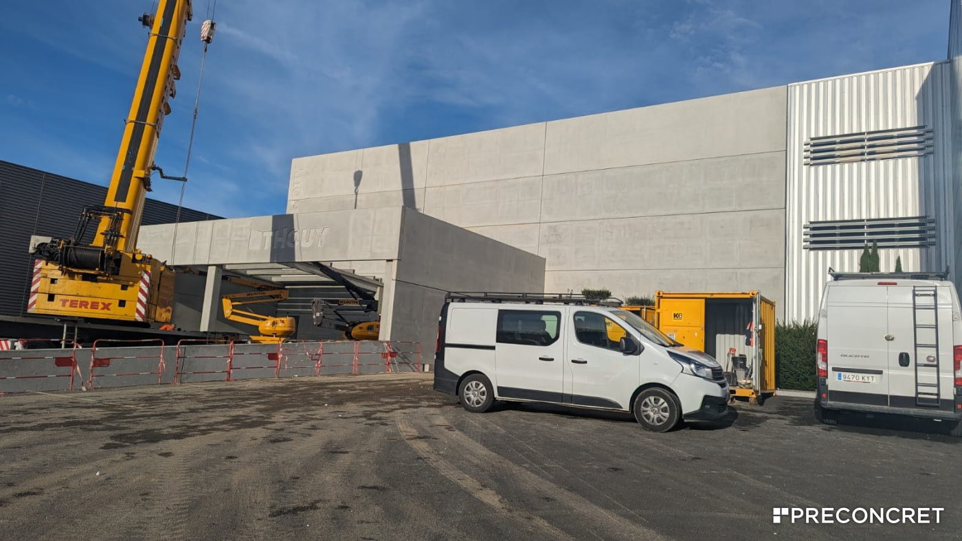 Nave industrial de 44,00 m de largo x 30,55 m de ancho x 12,79 m de altura en fachada. Paneles de cerramiento de 20 cm aligerados. Cubierta a dos aguas, piezas de cubierta jácenas aperaltadas.